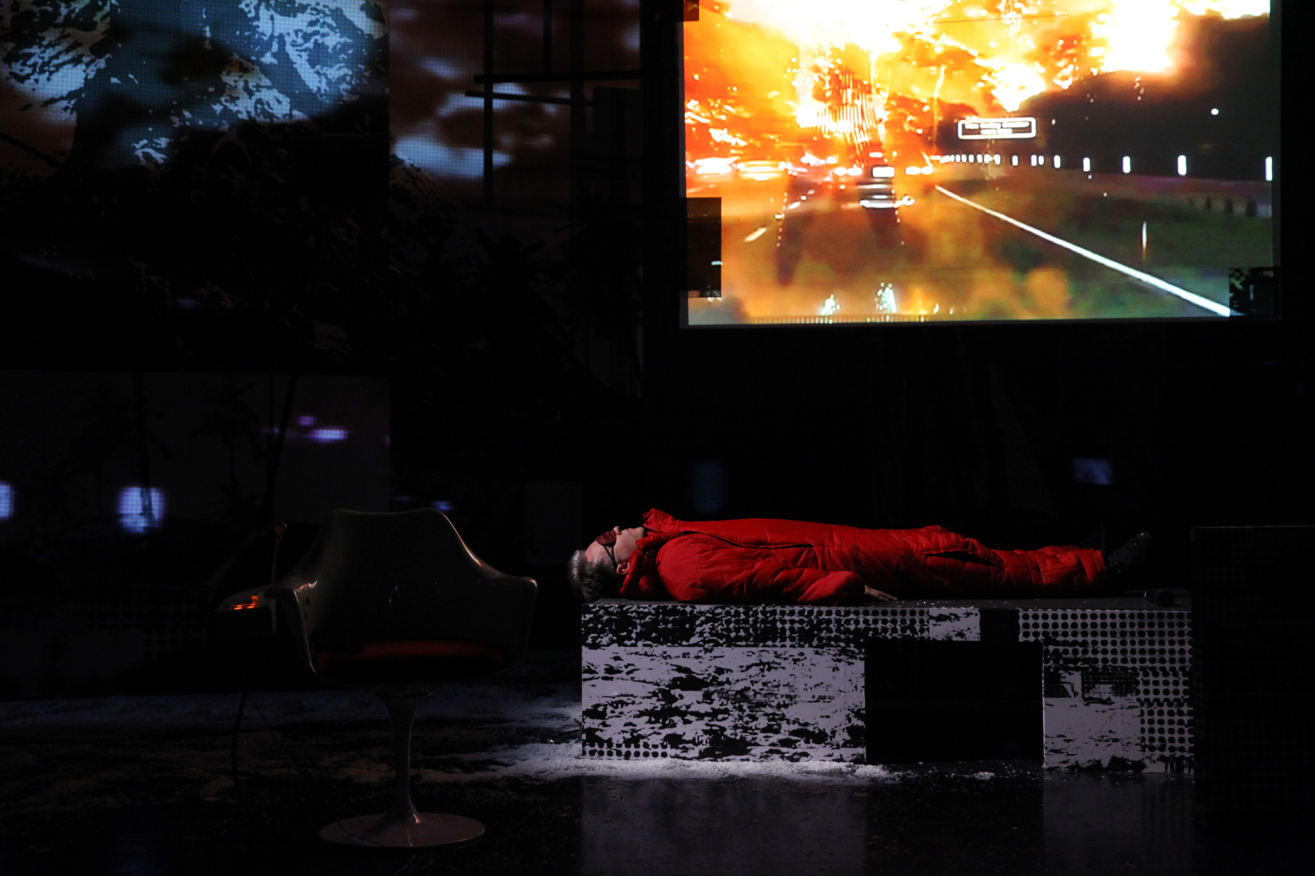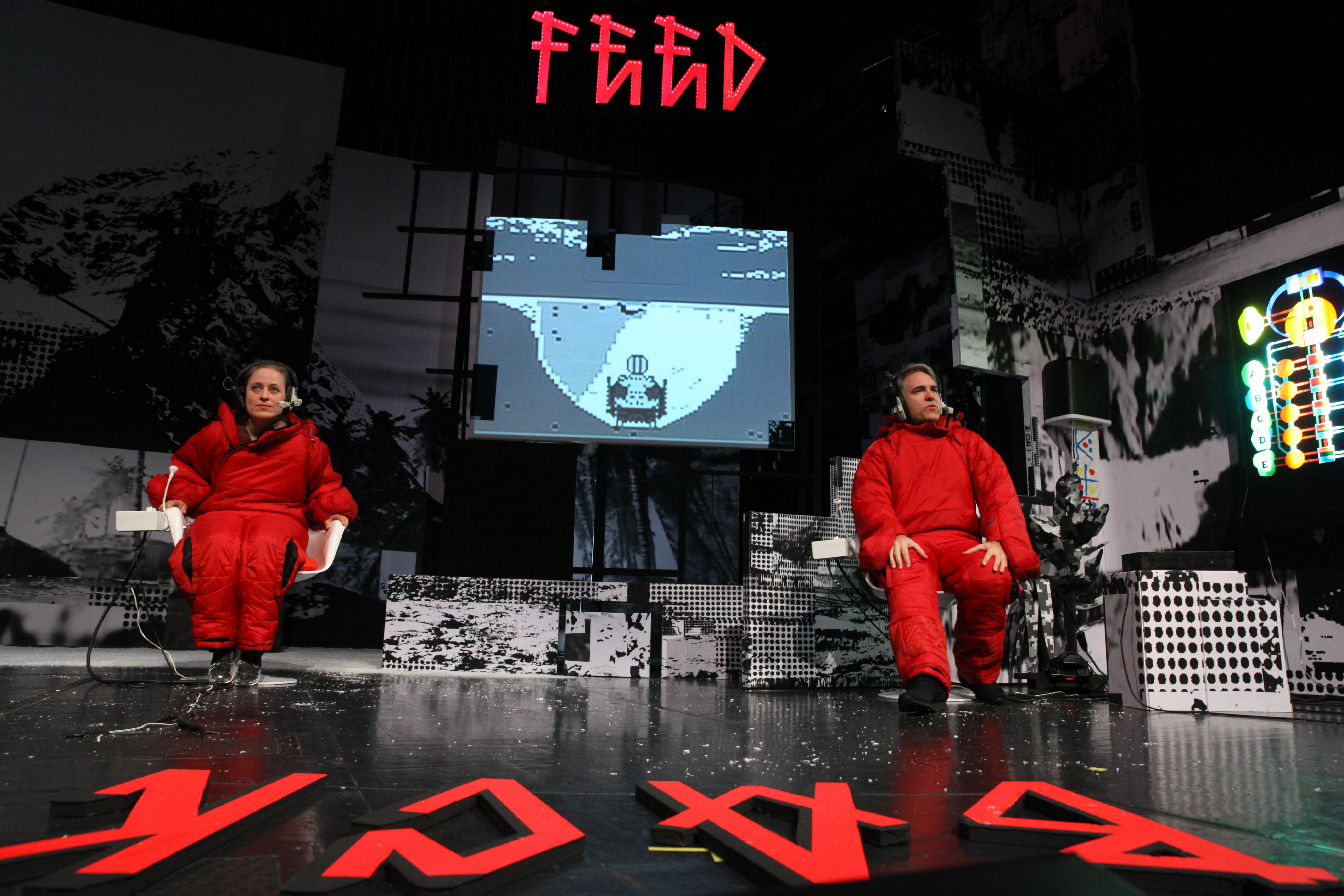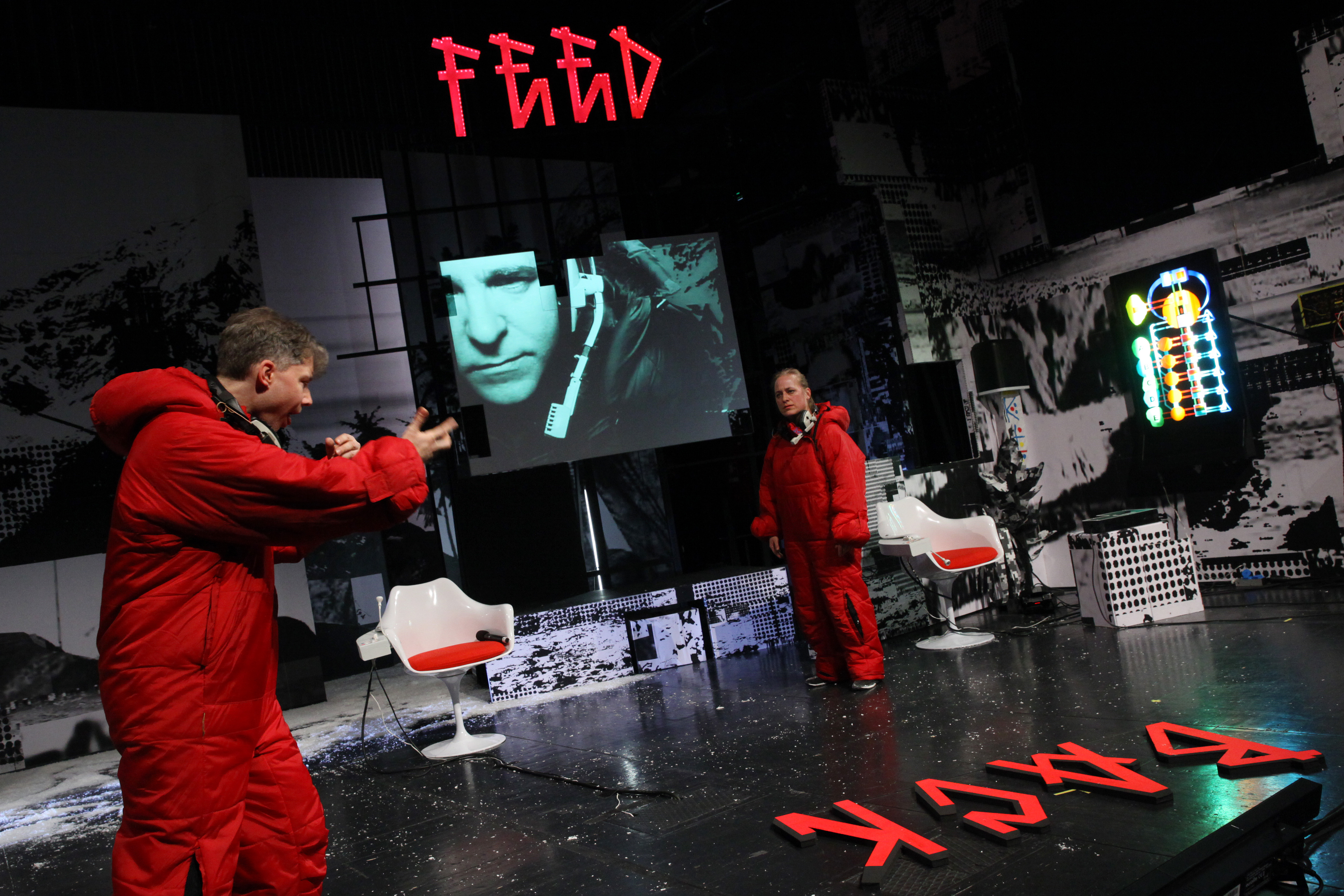 “Can there even be any control in the huge free space that is the Internet? Is controlling something the same as ruling over it? Is our head the only centre? And what is the point of all these digital communications when the analogue world remains as unchangingly unfair as it ever was? These are good questions, with which our three performers crawl ever deeper into the billowing Internet kraken, and slowly, through their talking, trace out his contours from the inside. ‘I distract therefore I am,’ cries Karschnia at one point in a flash of wit, and thus already comes close to the second, productively complex performance.”